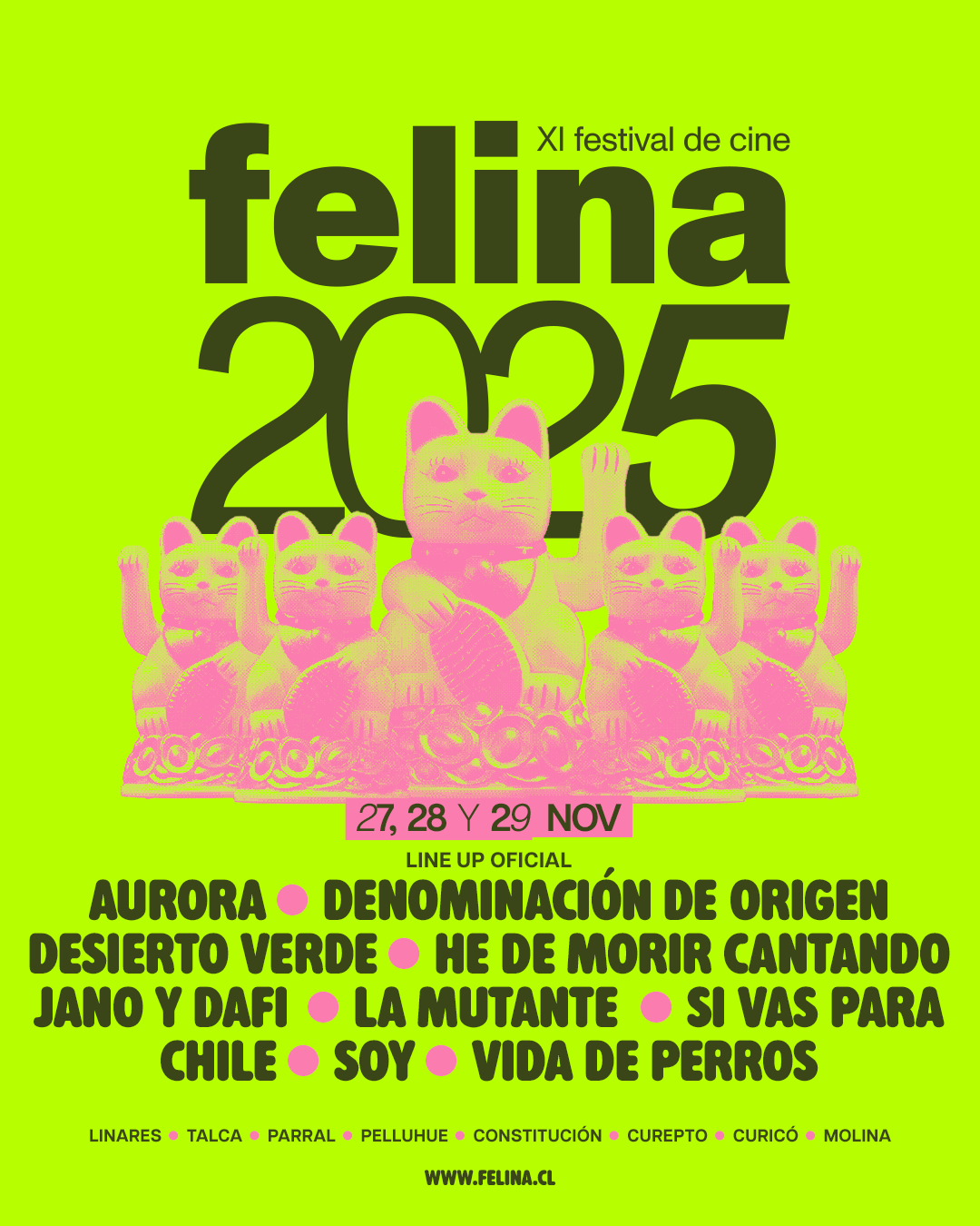 Felina 2025 se realiza con el respaldo de la Seremi de las Culturas, las Artes y el Patrimonio, en el marco del Día del Cine Chileno, conmemorado cada 29 de noviembre. Para más detalles sobre la programación visita felina.cl o el Instagram @festivalfelina.