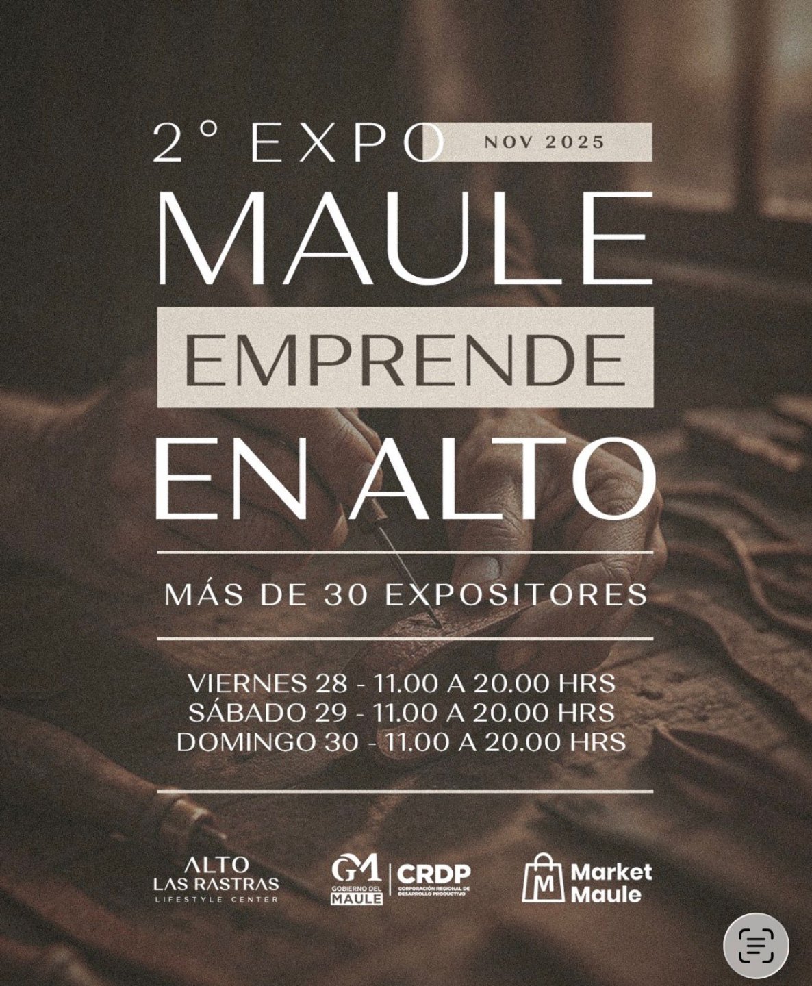 El gran atractivo será la 2° Expo Maule Emprende en Alto, que reunirá a más de 30 emprendedores de la región con el objetivo de visibilizar su trabajo, presentar productos únicos y aportar al movimiento económico local. La feria se desarrollará el viernes 28, sábado 29 y domingo 30 de noviembre, entre las 11:00 y 20:00 horas.