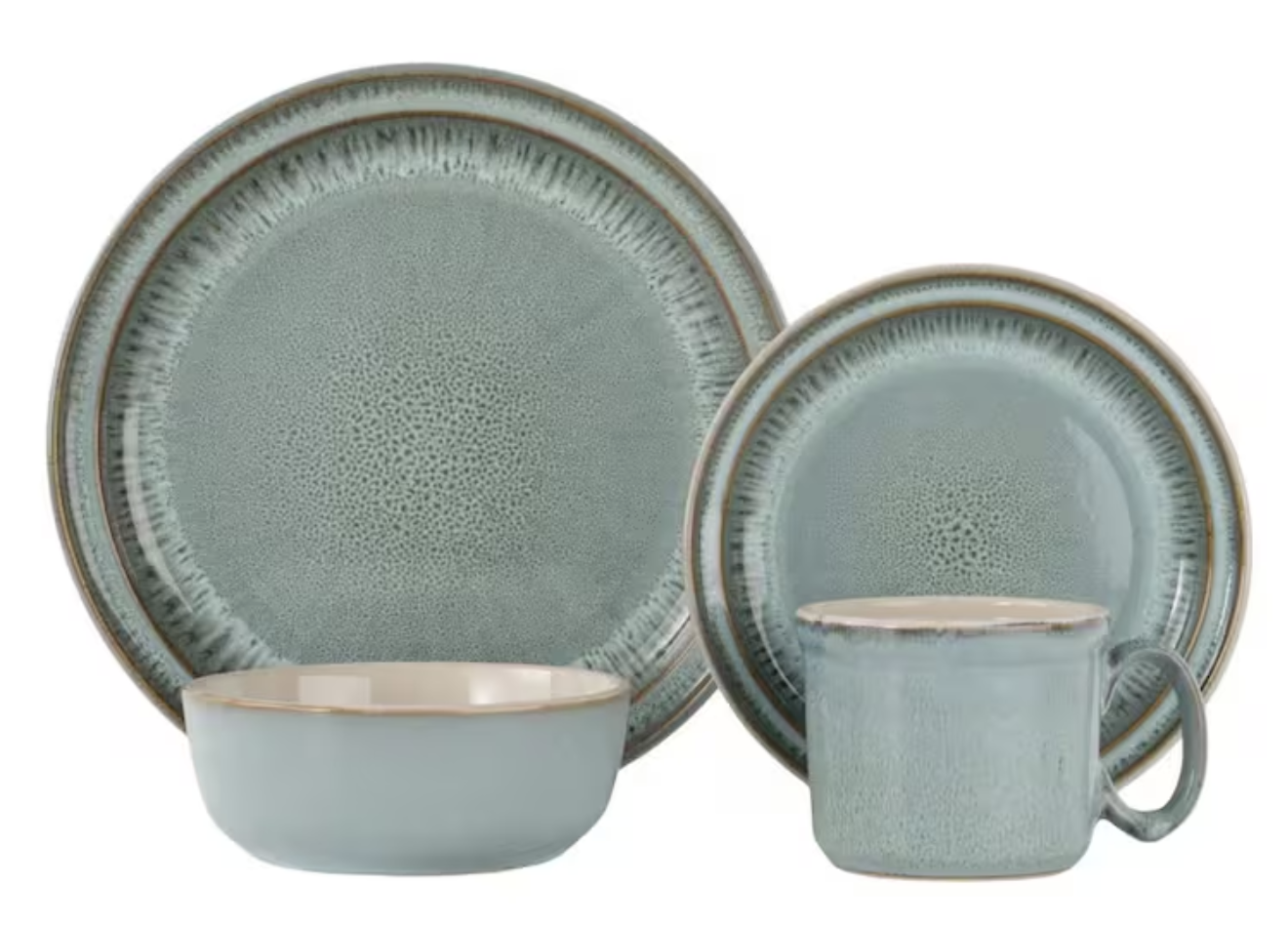 Juego de loza 16 piezas cerámica verde — Modelo Tango