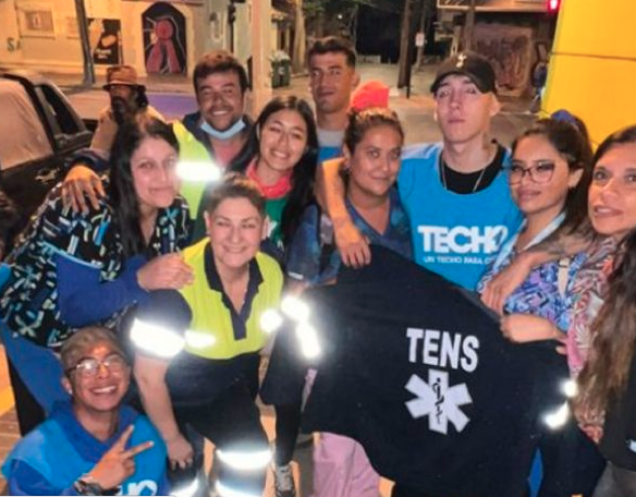 Así, el artista subió una imagen con parte de los voluntarios de Techo Chile y luciendo él mismo una pechera como uno de sus colaboradores, junto a tens y equipos de emergencia.