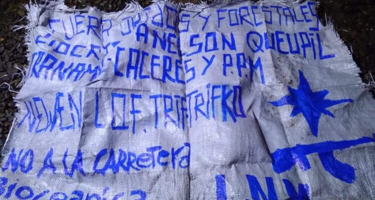 En el lugar del ataque se encontró un lienzo reivindicatorio donde se alude a la salida de forestales y el rechazo a la carretera bioceánica. Dicho lienzo se lo adjudica la orgánica Liberación Nacional Mapuche (L.N.M.).