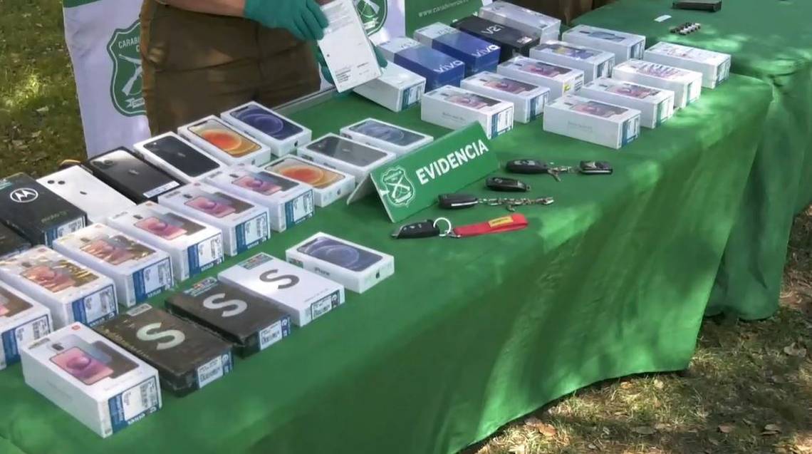 Luego, tras un amplio operativo desarrollado en la comuna de la Granja, se realizó la entrada y registro de tres inmuebles donde pernoctaba el antisocial, incautando en uno de estos domicilios: $10.460.000 en efectivo, 134 cartuchos balístico 9 mm, 2 pistolas aptas para el disparo, una con encargo vigente, 37 celulares nuevos de alta gama de diversas marcas, 4 llaves de vehículos robados y otros elementos vinculantes a delitos violentos.