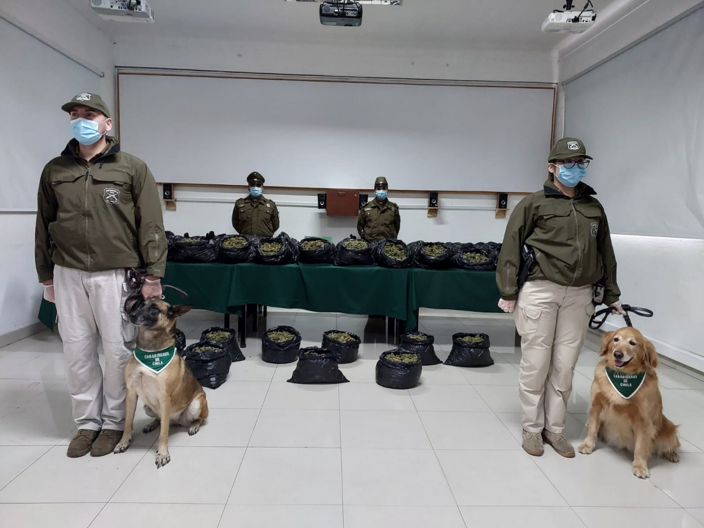 Un inédito y exitoso procedimiento realizó Carabineros del OS-7 Talca durante un control vehicular en la Ruta 5 Sur, en la comuna de San Rafael, al incautar desde un móvil 137 kilos 500 gramos de marihuana elabora y 403 mil pesos en efectivo y, en el que tuvieron nuevamente una participación clave, las canes antidrogas “Etnia” y “Laika”, de esta sección especializada, en la detección de esta sustancia ilícita.