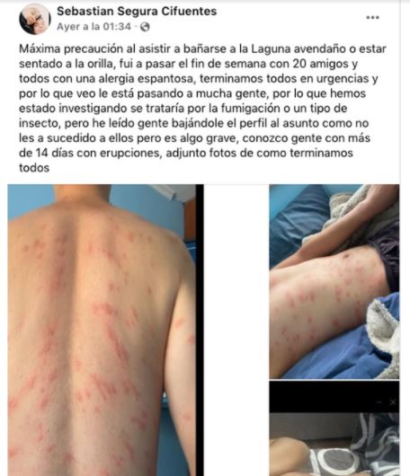 El hecho se conoció a través de las redes sociales, donde un afectado subió fotos de su cuerpo y contó su experiencia donde 20 amigos sufrieron el mismo brote. Más tarde, otras personas comenzaron a comentar haber presentado los mismos efectos.