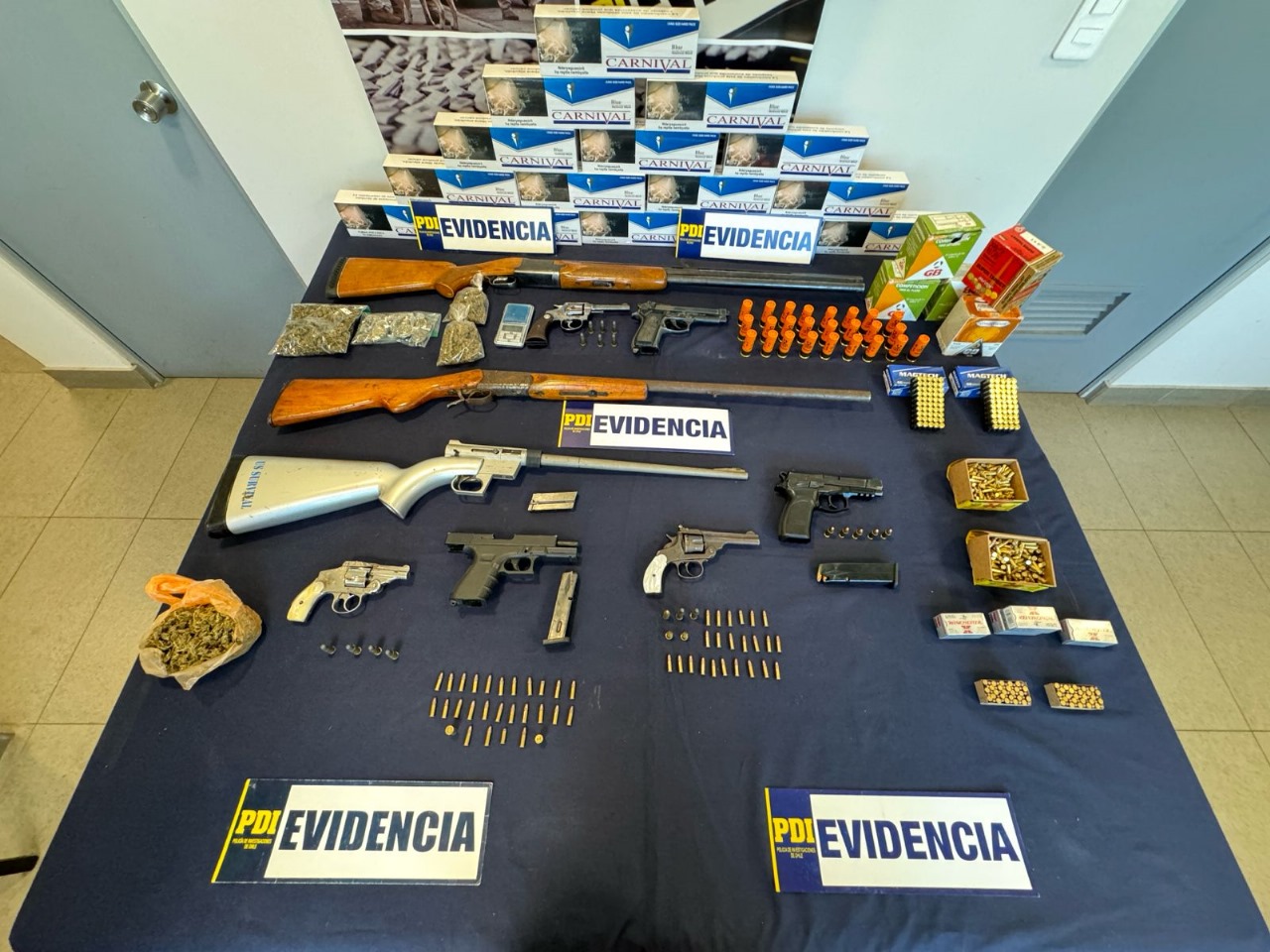 Por su parte, la delegada presidencial provincial, Aly Valderrama, destacó “el trabajo realizado, tanto de la Policía de Investigaciones como de la Fiscalía, pero por sobre todo, de la comunidad, que se ha hecho parte y ha utilizado el programa del Ministerio del Interior, Denuncia Seguro, lo que permitió la incautación de un importante número de armas, de drogas, de munición y de cigarrillos, como producto clandestino. Estamos trabajando de forma coordinada y reforzar que la comunidad tiene que utilizar esta herramienta que garantiza el anonimato, no hay registro del IP del teléfono o del computador del cual se genere la denuncia, se conversa con una persona, quien va recabando los antecedentes, y a partir de esa denuncia inicial se genera este proceso investigativo que permite obtener estos resultados”.