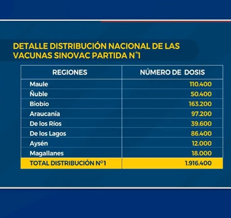 Esto luego de que este jueves 28 de enero arribará a Chile un cargamento con casi 2 millones de dosis de la vacuna Sinovac, las cuales serán distribuidas por gran parte del país.