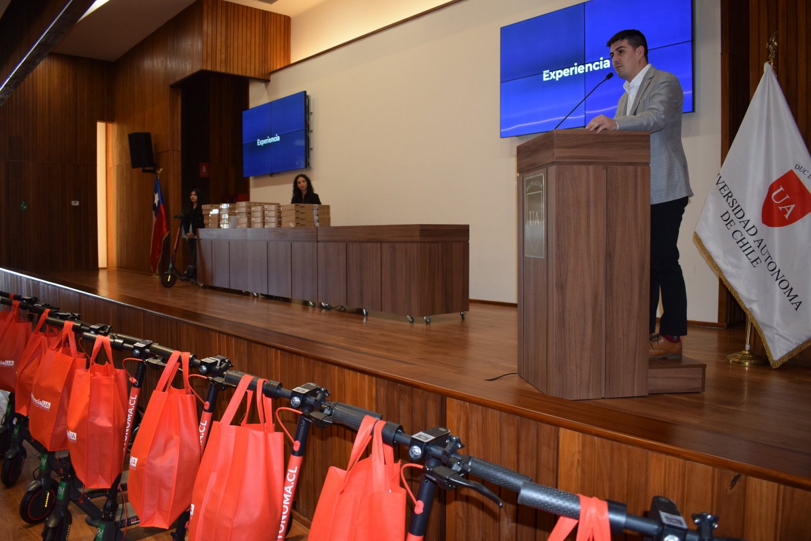 La Universidad Autónoma de Chile entregó 68 becas tecnológicas y de electromovilidad a estudiantes de primer año que fueron reconocidos por la institución de educación superior por su excelencia académica, consistentes en la entrega de computadores y scooters eléctricos que apoyarán la inserción de estos nuevos alumnos en la vida universitaria que comenzaron a desarrollar desde este 2023.