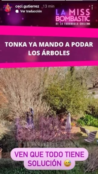 Ahora, a través de sus historias, Gutiérrez actualizó este conflicto, donde señaló que Tonka Tomicic podaría los árboles que generan molestia de sus vecinos.